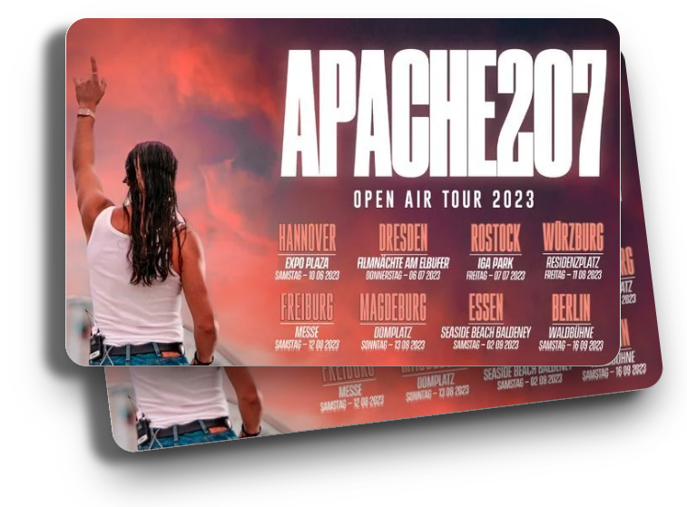 Bitte gib auf der nächsten Seite deine Daten ein und gewinne 2 Tickets für Apache 207!